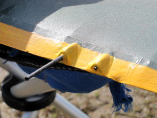 フラッターの要因と思われるリンケージの遊びを抑えるためエルロンリンケージの翼側ガイドパイプ内に小径パイプを挿入する。