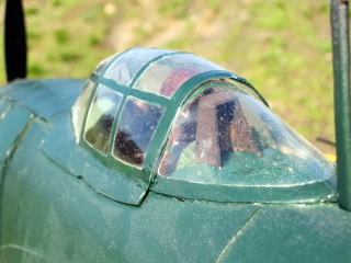![]() 機首内はにアンプに受信機を詰め込み、防火壁にはバッテリー取り付け用のマジックテープが貼ってあります。 |