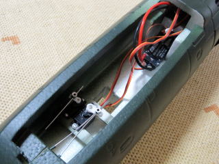 アンプ搭載済み。 エレベータおよびラダーのサーボ、リンケージも搭載済み。 |