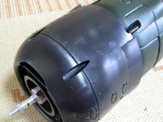 胴体はFSKと比べるとやはり大きく重いね〜。 胴体後部の塗り分けラインが中島のものになっています。 零戦二二型は三菱でしか生産されていないはず・・・これロシア製復元機からして塗り分けがそうなってるんだよな〜。 機首にはモータ取り付け済み。 |