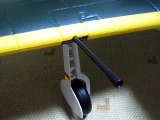 後方は垂直尾翼にフックを差し込んで瞬間で接着。 そこにスプリングをひっかけました。 |