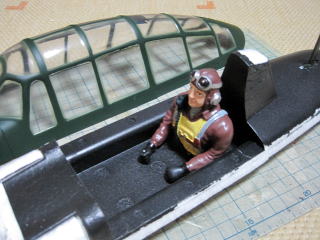 搭乗員を操縦席に乗せ風防を再接着。 計器盤との距離感や腕の処理が何となく不自然な感じがするけど今はこれでいいや。 |