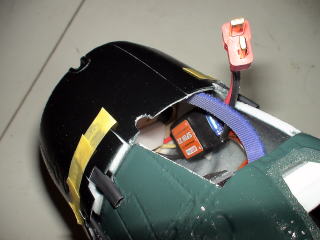 アンプを機首部エンジンカウル内に両面で貼り付け。 相変わらず手が入りにくく難儀します。 |