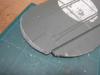 | 次に追加となる五二型のモールド個所です。 最初にカッターで薄く三角に切り取り、その後丸めたサンドペーパーで徐々に元のモールドと同じくらい広く深くしていきました。 |