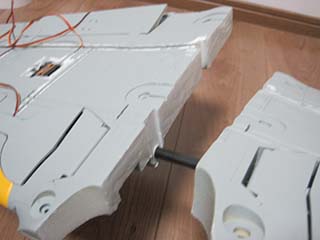 | 左右の主翼にパイプを差し込んで接着しました。 | |