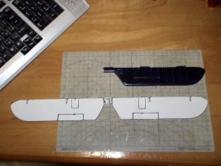 実機の図面を元に2mmスチレンから切り出し、補強に1mm幅0.4mm厚のカーボンを貼り付けました。 |