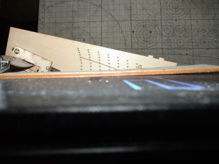 私の作業では各ブレードのピッチがバラバラになりそうなので今回は長穴で一番浅いピッチにしてみました。 ゲージで測ってみると、う〜ん・・・だいたい8くらい・・・かな・・・。 |