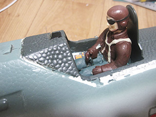 | メインギアが海を渡って我が家に来るまで他にできる事はやっておきます。 コックピット内の濃い色は太陽光でEPOが膨張しやすい・・・結果、見た目がキモイ・・・。 そもそもコックピットはこの色であっていたのだろうか? |
