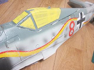 | 取り外してあったキャノピーを接着しなおし塗装前にガラス面をマスキング。 | |