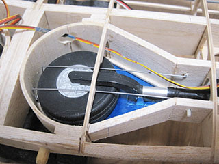 | 昇降舵・方向舵・尾輪引込用のサーボを取り付けました。 | |