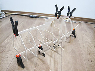 | 図面に合わせて位置関係を確認。 フラップ用のリブを位置決め接着していきます。 |