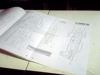2007/06/12ブログより 思いついたのが去年の末(2006年)それからボチボチ始めて早半年(2007年06月)・・・雷電の図面が掲載されている書籍を通販で購入し、スキャナしてPCに取り込み三面図から機体骨格をドローソフトで構築しました。 |