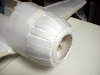 エンジンカウル部にボリュームが足りないため2mmスチレンを追加で貼りつけ。 |