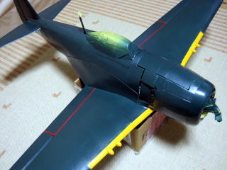 主翼をエポでしっかり接着。 私は主翼取り外し式の工作ができません。まぁ、普段から外す習慣もないし一体の方が軽く仕上がって良い!っといいわけします。 |