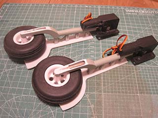 | 補助翼と高揚力装置のサーボを両面テープで固定。 主脚ユニットを組付けました。 |