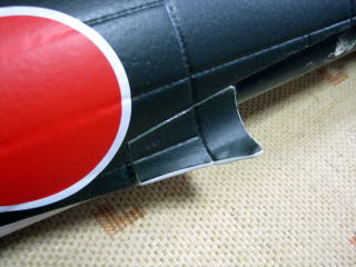 9月5日 月曜の夜の事・・・ 初FLTの事をあれこれ思いつつ眺めておりました。 このFMS零戦、マーキングの貼りつけが一部悪く、浮いている個所が複数ありました。 そこをチョイチョイと触っていたら・・・ |