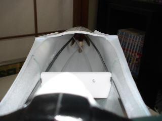 アンプを機首部エンジンカウル内に両面で貼り付け。 相変わらず手が入りにくく難儀します。 |