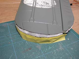 | モールドが仕上がったらサーフェイサーを吹き付け研磨しながらモールドの状態を確認。 削った個所の発泡の目も消します |