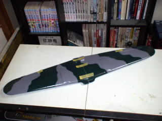主翼をそのままカンザシを入れ左右主翼を合わせると上面カーブの中央面がせり出しており、またスパーがあたるので適度に削る必要があります。 |