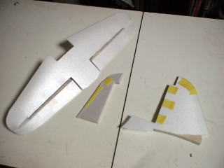 尾翼も主翼同様、バルサの骨組みにスチレンを両面貼り。